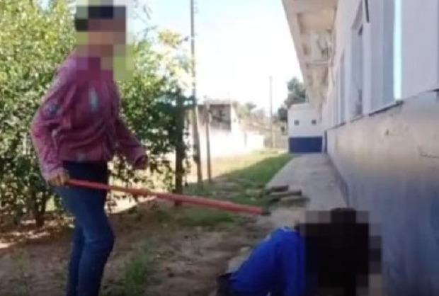 No vídeo, a estudante aparece ajoelhada em frente a uma parede. Ela é agredida com socos, chutes e até mesmo um cabo de vassoura. As imagens são fortes.