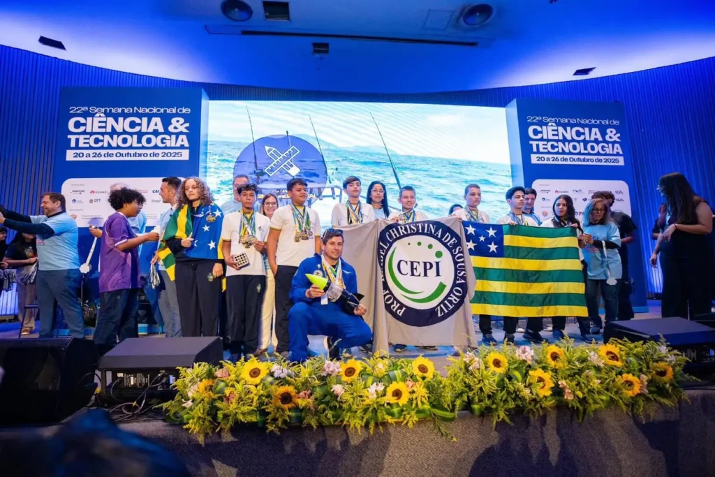 Estudantes do Cepi Professora Izabel Christina de Sousa Ortiz, de Formosa (GO), foram destaque na 20ª Semana Nacional de Ciência e Tecnologia (SNCT), realizada em Brasília (DF). A equipe, formada por seis alunos e dois professores, representou Goiás na cerimônia de entrega de medalhas do Programa Caça Asteroides e da Olimpíada Brasileira de Satélites (OBSat), ocorrida na quarta-feira (22/10).