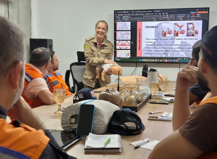 O treinamento contemplou ainda noções de atendimento a vítimas de trauma, com abordagem de fraturas, entorses, queimaduras, técnicas de imobilização e movimentação segura. Também foram discutidas emergências clínicas, como infarto agudo do miocárdio (IAM), acidente vascular cerebral (AVC/AVE), convulsões, síncope e estado de choque.