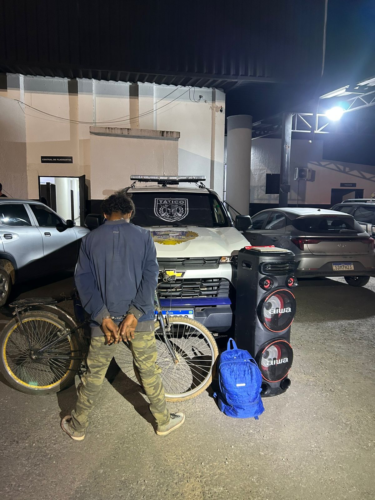 O suspeito foi encaminhado à Delegacia da Polícia Civil, onde o caso foi apresentado à autoridade policial para os procedimentos legais cabíveis.