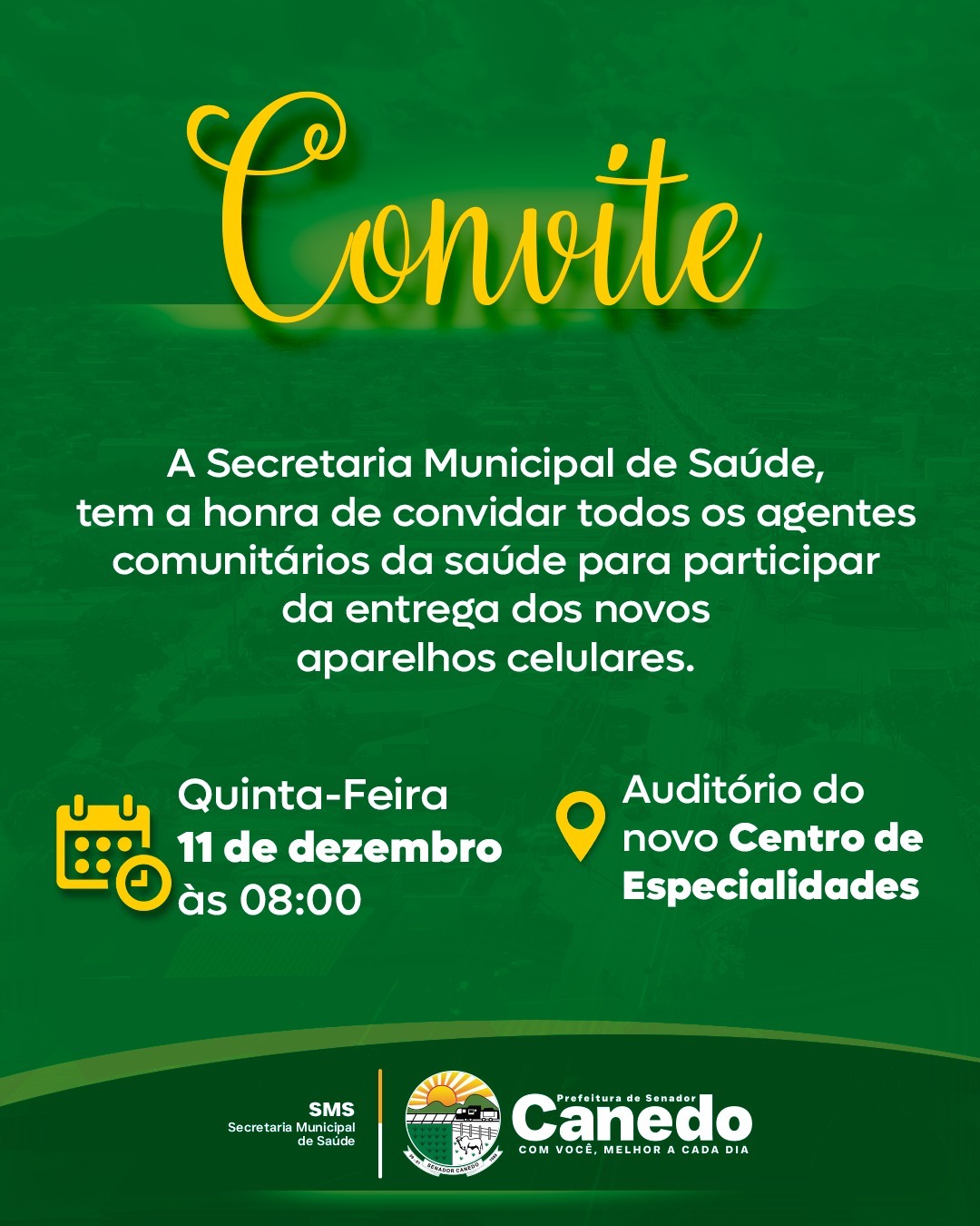 A Secretaria Municipal de Saúde de Senador Canedo será realizada nesta quinta-feira, 11 de dezembro, a entrega de novos aparelhos celulares aos Agentes Comunitários de Saúde (ACS). A cerimônia ocorreu no auditório do recém-inaugurado Centro de Especialidades e Reabilitação.