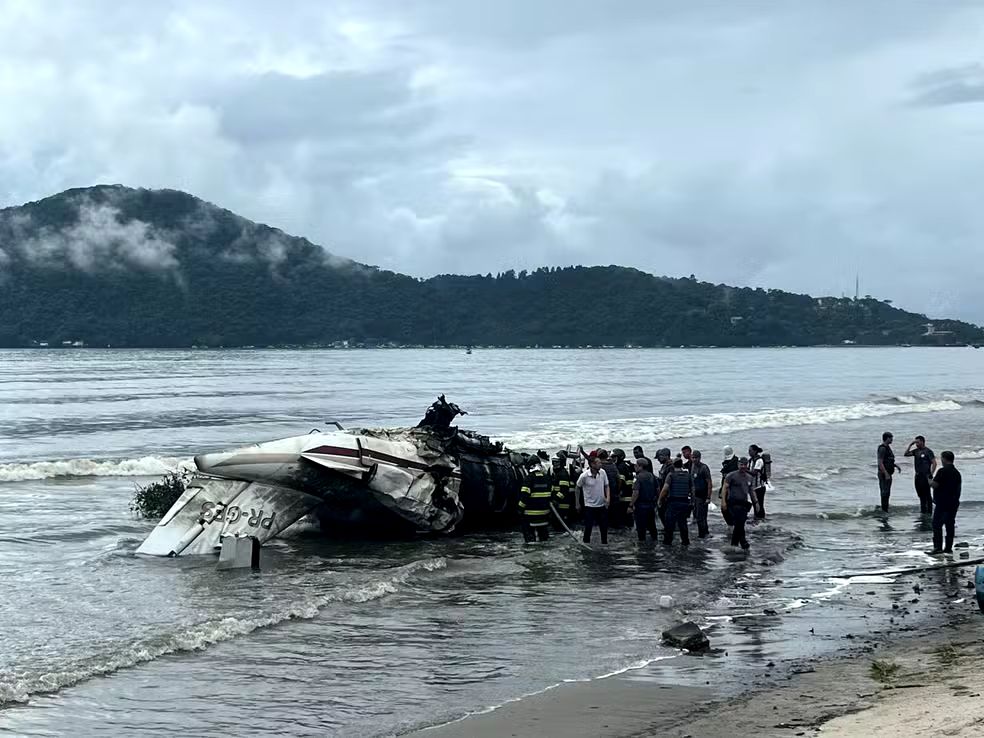 A concessionária Rede VOA, que administra o aeroporto de Ubatuba, informou que o acidente atingiu uma mulher na orla e uma criança, que sobreviveram.