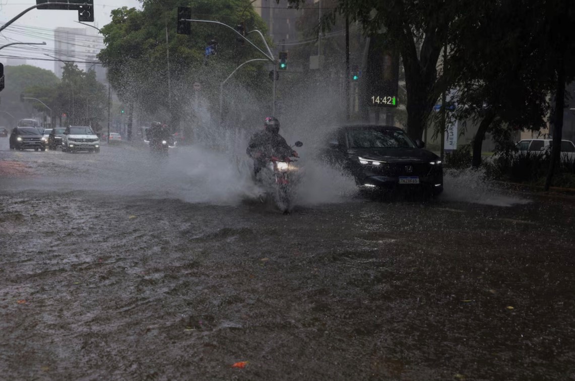 A previsão aponta que algumas localidades podem registrar chuva entre 30 mm e 40 mm por hora, totalizando mais de 60 mm ao longo do dia, além de ventos moderados a fortes e raios. As condições são consideradas perigosas, especialmente em áreas urbanas sujeitas a pontos de enchentes.
