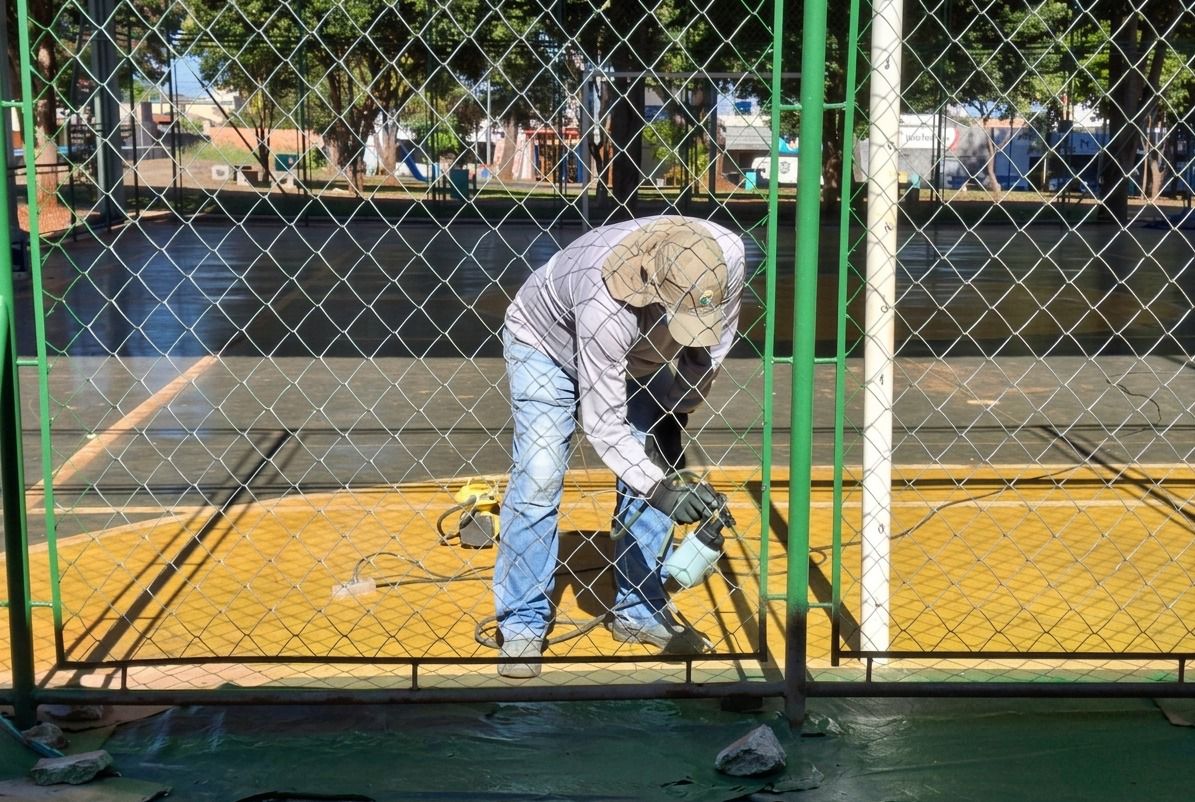 O espaço esportivo do bairro Jardim das Oliveiras, em Senador Canedo, recebeu melhorias importantes com a substituição completa do alambrado e o início da demarcação da quadra.