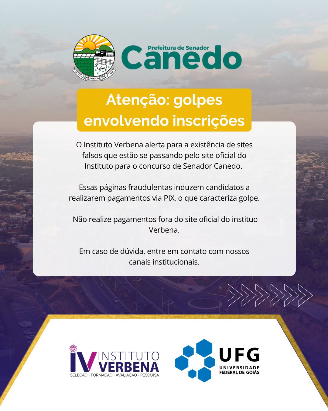 A Prefeitura de Senador Canedo, em parceria com o Instituto Verbena, emitiu um alerta importante à população sobre a existência de sites falsos relacionados ao concurso público do município.