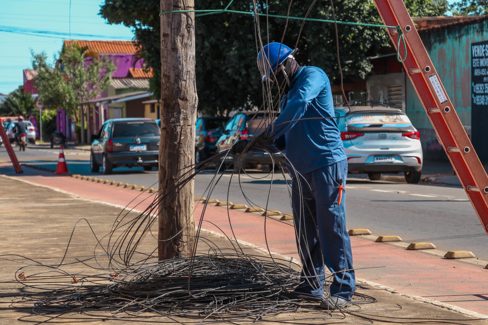 Mais de 21 toneladas de cabos inutilizados já foram removidas dos postes da cidade desde o início do projeto